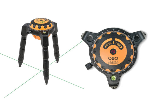 Krysslaser GeoSpider Batteridriven golvlaser som visar 2st 90 graders vinklar mot varandra, roterbart huvud 360 grader med justerskruv för preci...