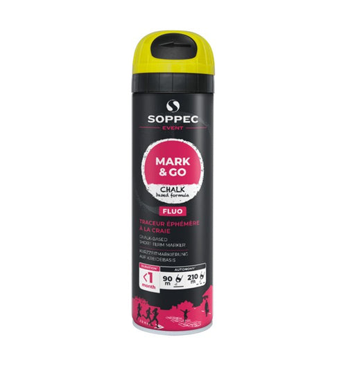 MARK & GO är en korttidsverkande, mångsidig fluorescerande markeringsfärg baserad på krita, avsedd för tillfällig skyltning, avgränsning eller ...