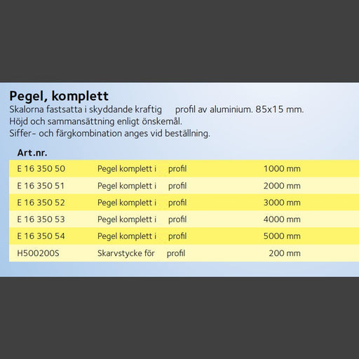 Pegelskala / vattenståndsmätare 1m Funktion pegeln består av en fast skala för att avläsa vattenytans höjd  Utförande ...
