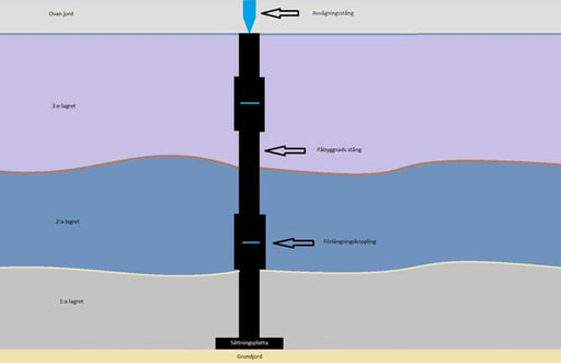 Sättningspegel 1,0 m med bottenplatta 40 x 40 cm Sättningspegeln består av bottenplatta 40 x 40 cm, 1,0 m gängstång med diameter 16 mm samt mont...