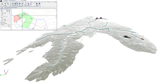 Topocad Volympaket (Basmodul + Volym modell) I Volympaketet ingår Basmodulen och Volym modell. Volym modell beräknar volymer mellan terrängmode...