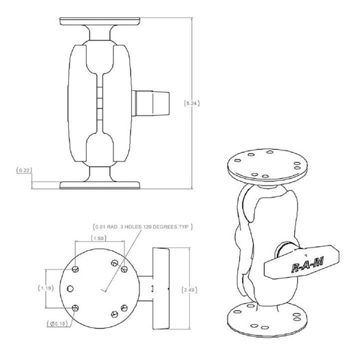 RAM® rund bas med kula (C-kula) RAM-202U består av en 1,5" C-kula ansluten till en rund platta med en diameter på 2,5". Denna monteringsdel inklude...