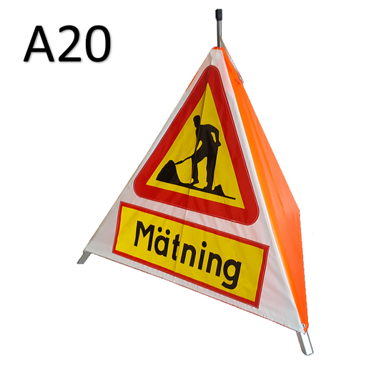 Varningstält - Arbete vid väg - "Mätning" - A20 Benlängd 110 cm Vid uppställt läge 115 cm ben till ben, ca 90 cm högt Transportväska medf...