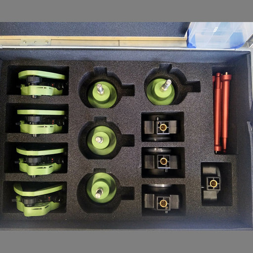 Transportväska för tvångscentreringar Robust väska i trä och stål med skräddarsydd förvaring av fyra tvångscentreringar med tillbehör. Utsk...