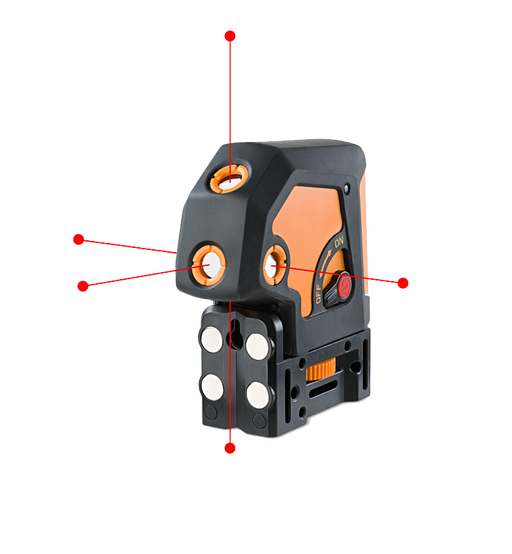Geo5P 5-punktslaser 5 självnivellerande laserpunkter i rät vinkel mot varandra: uppåt, nedåt, framåt, vänster, höger. För rördragning, inriktnin...